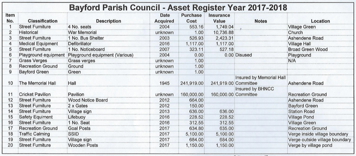 Asset Register.